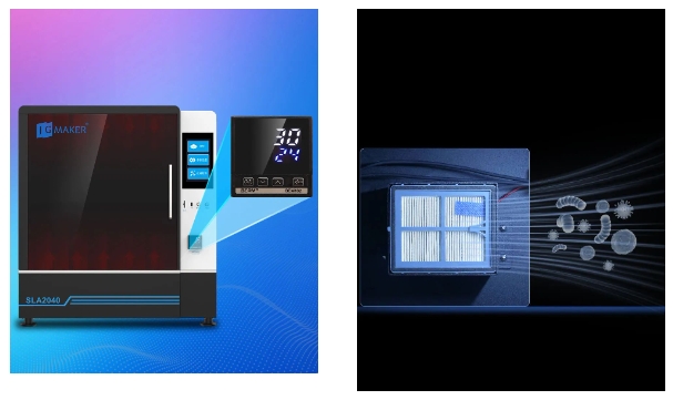 SLA2040還配置了多層空氣過濾網(wǎng),有效凈化打印環(huán)境和料池樹脂異味,讓打印環(huán)境更舒適干凈!