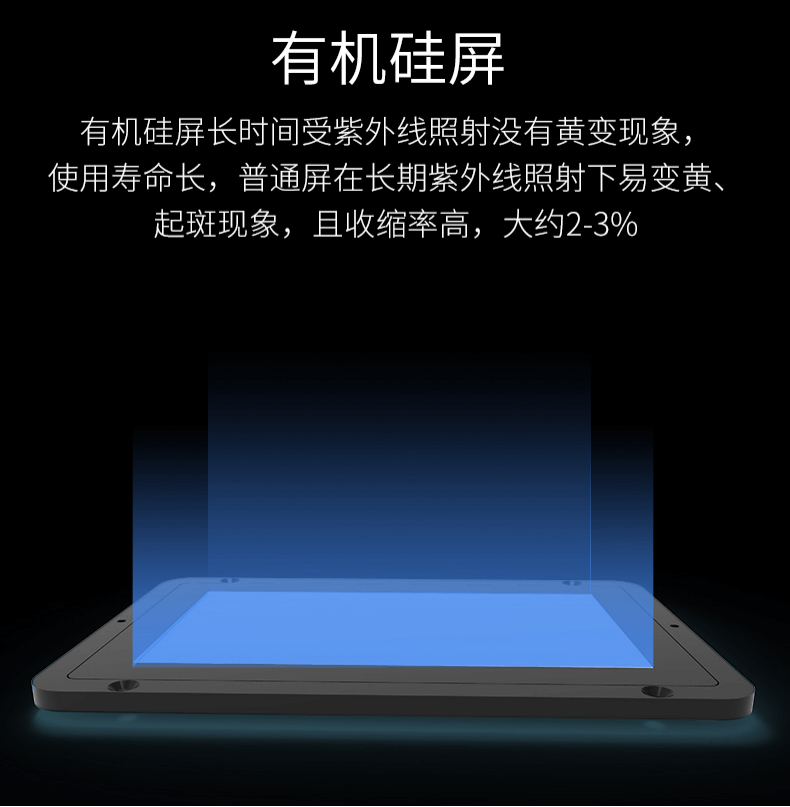 極光爾沃也是下足功夫,因?yàn)?080P屏幕對(duì)比2K屏幕無疑是落后,但工程師團(tuán)隊(duì),在系統(tǒng)增加邊緣優(yōu)化,讓打印的邊緣更圓滑光順,打印效果相比2K,已經(jīng)完全可以同臺(tái)競(jìng)爭(zhēng)對(duì)比。2K屏幕打印效果,屏幕能耐長(zhǎng)時(shí)間的紫外線照射,耐高溫,不易發(fā)黃,起斑,極光爾沃還承諾正常使用下質(zhì)保3個(gè)月。工程師團(tuán)隊(duì)為使用戶體驗(yàn)更上一個(gè)層次,特地選用了超耐磨高透納米膜置于屏幕上方,更好的保護(hù)固化屏,大大減低用戶的錯(cuò)誤操作造成的人為損壞、。因?yàn)槌?,耐磨,紫外光光源通過時(shí)不會(huì)產(chǎn)生折射,打印效果依然在線,也這就是極光爾沃科技的水平與用心,堅(jiān)持與用戶一起創(chuàng)造更好的產(chǎn)品。