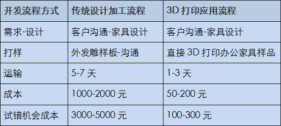 從傳統(tǒng)設(shè)計(jì)加工模式到3D打印創(chuàng)新定制,3D打印技術(shù)的大潛力,在辦公家具定制化中發(fā)揮著非常大的優(yōu)勢(shì)。設(shè)計(jì)師設(shè)計(jì)好一張桌子的腳凳造型,然后用3D打印機(jī)直接打印出來(lái)進(jìn)行結(jié)構(gòu)驗(yàn)證,驗(yàn)證沒(méi)有任何問(wèn)題就會(huì)進(jìn)行下一步鑄造。這在很大程度上節(jié)省了開(kāi)發(fā)時(shí)間,為企業(yè)贏得搶占市場(chǎng)的先機(jī),獲得客戶的信任。