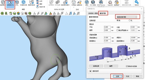 ④調(diào)整好后點(diǎn)擊“應(yīng)用”即可沿著切割線把模型切割開(kāi)了。
