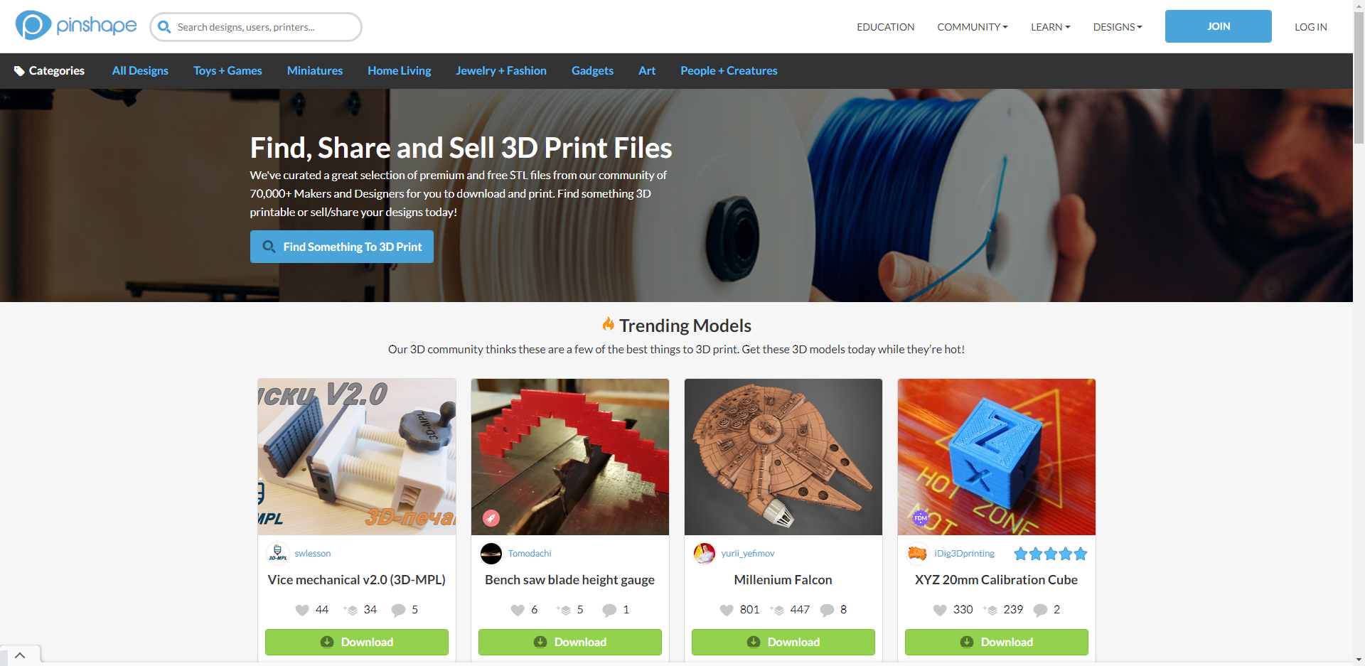 Pinshape是3D內(nèi)容世界里的另一家知名網(wǎng)站。這個3D社區(qū)市場擁有超過55,000為創(chuàng)客和3D設(shè)計師,里面既有免費的STL文件也有需要付費的STL文件。