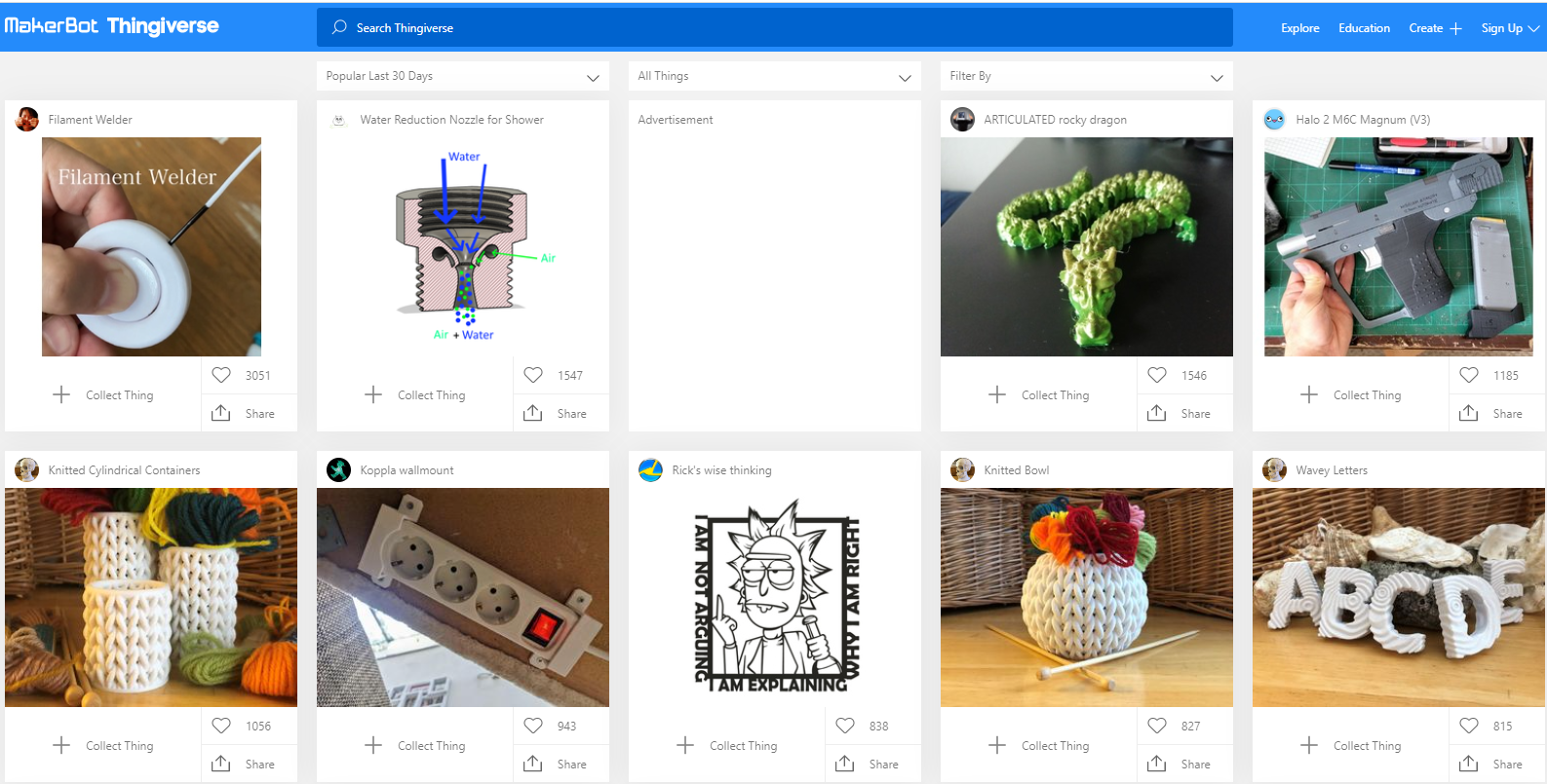 Thingiverse上傳的模型已經(jīng)超過100萬個,下載量更是達到2億之多。