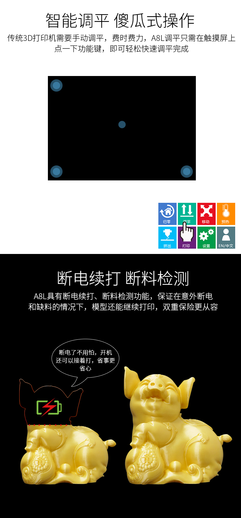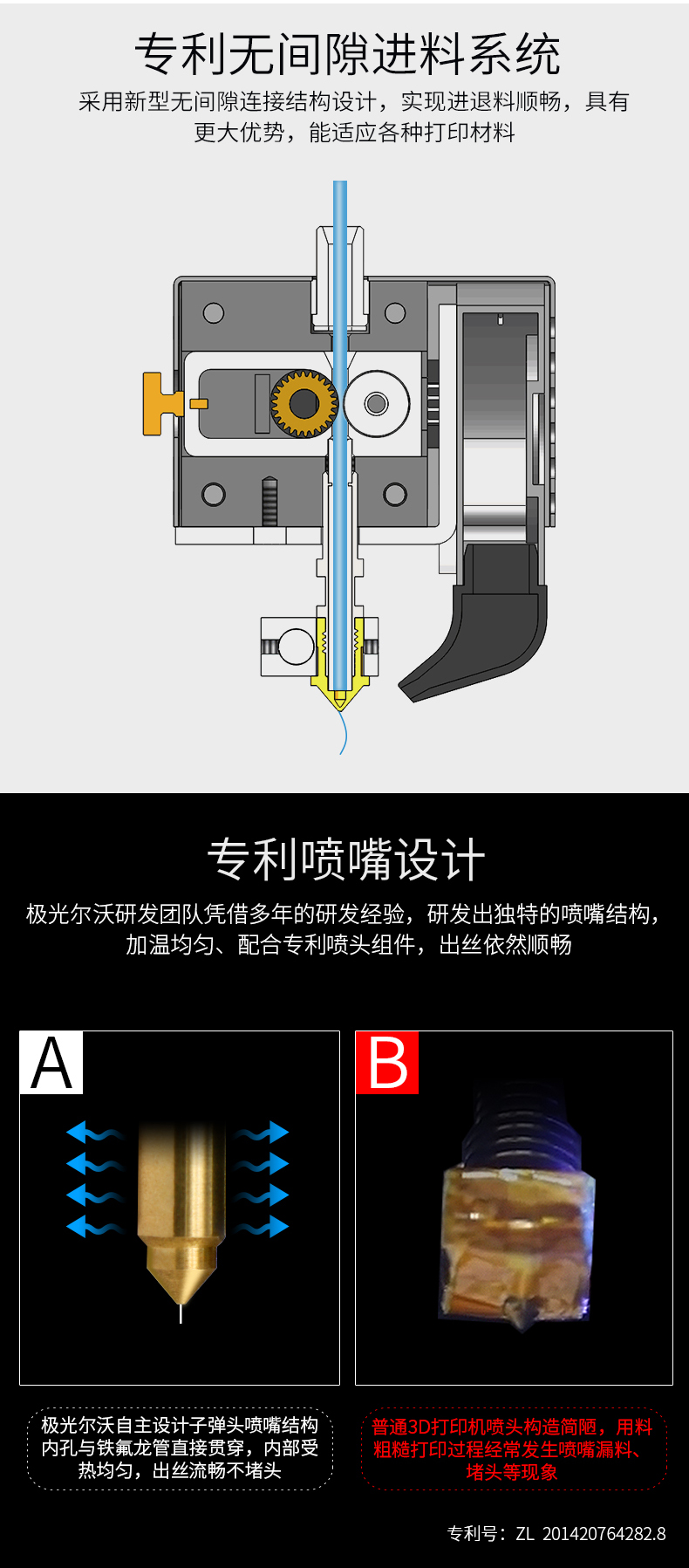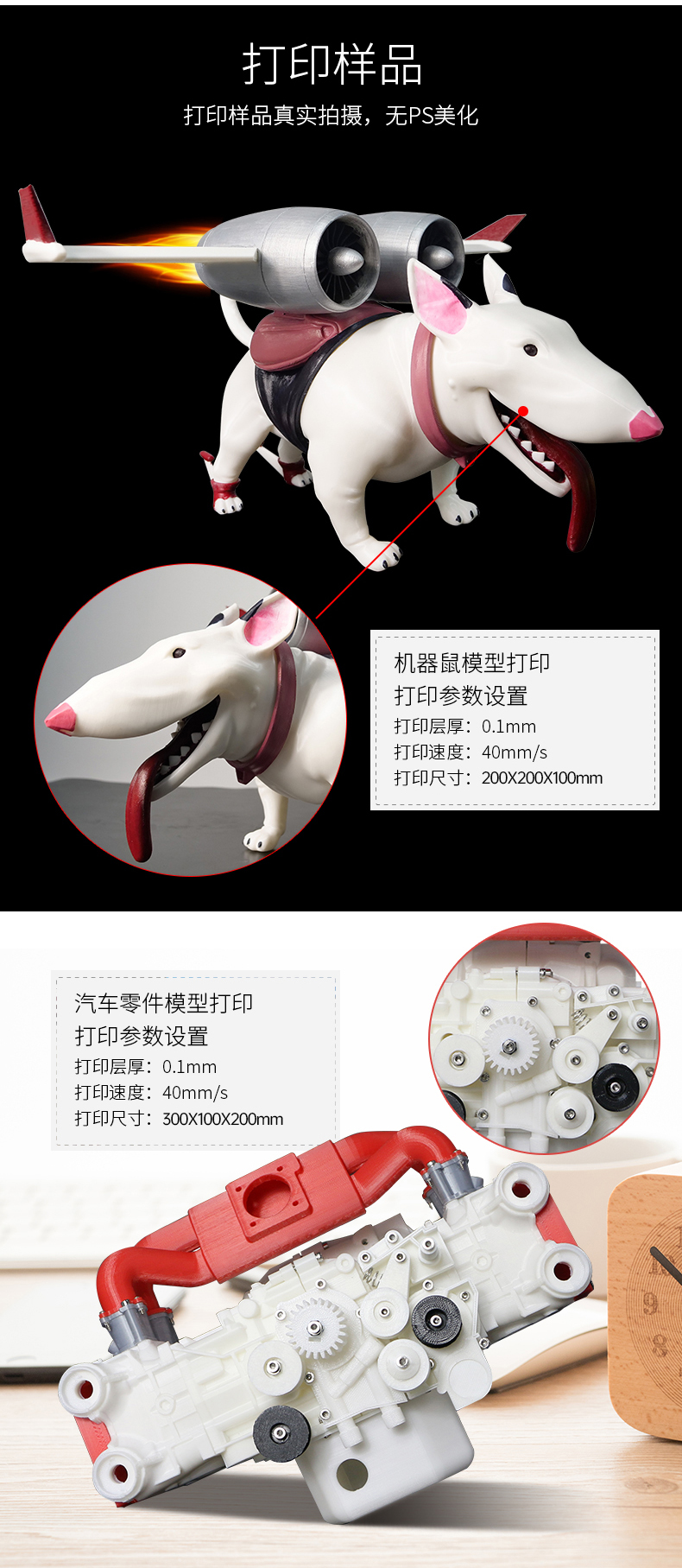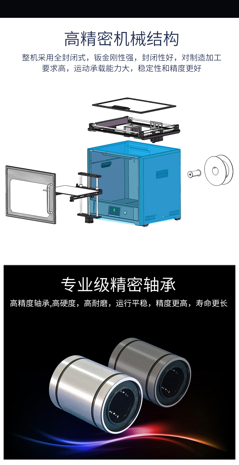 全球首創(chuàng)雙電機傳動送料結構,并配備高品質德國進口配件,打印精度媲美藝術品,這是一款追求“精確、精密、精致”的3D打印機。