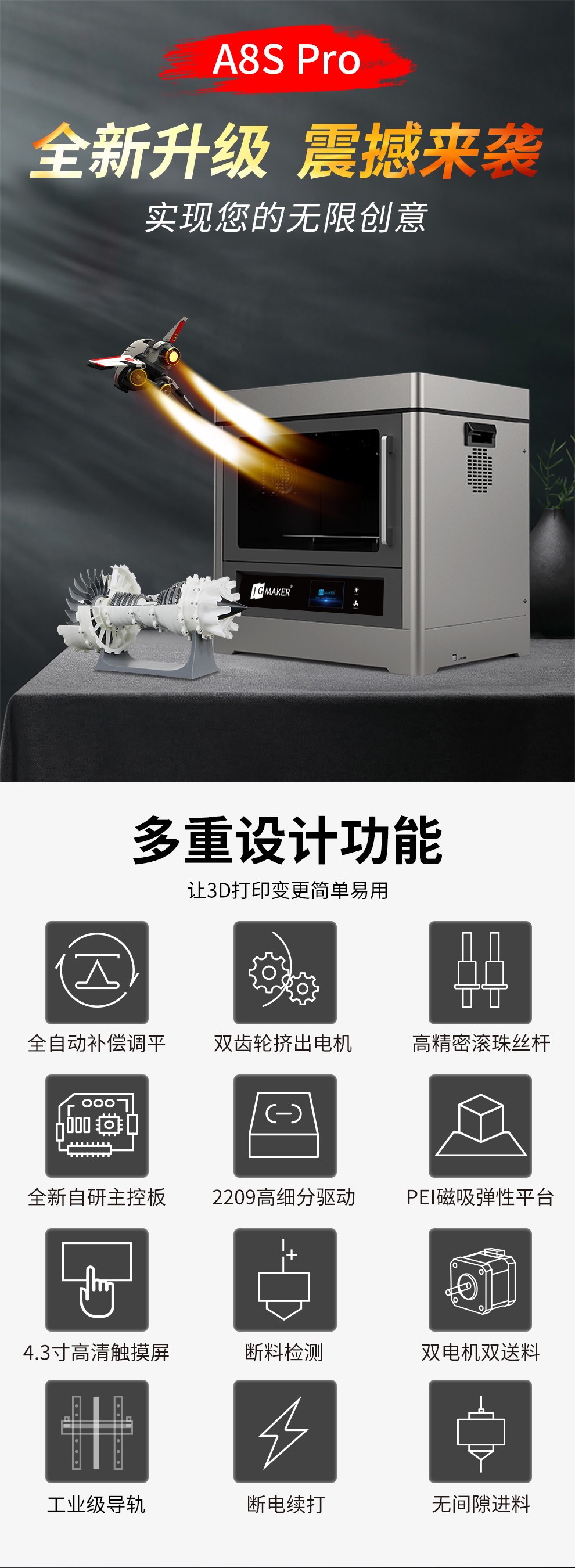 JG-A8S Pro 工業(yè)級3D打印機