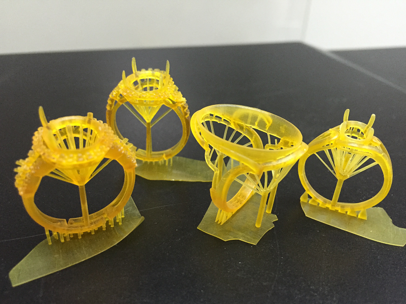 高深點講,光敏樹脂是由光引發(fā)劑,單體聚合物與預聚體組成的混合物,這種材料可在特定波長紫外光聚焦下完成固化,一般用于SLA/DLP機型之中。使用光敏樹脂材料打印出來的物品,表面較為光滑、成型質量高,所以許多DLP機型被定為珠寶級別。